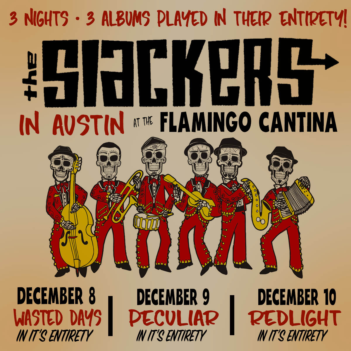 The Slackers are joining us for three very special nights in December. Each night they will perform one of their albums in it’s entirety.