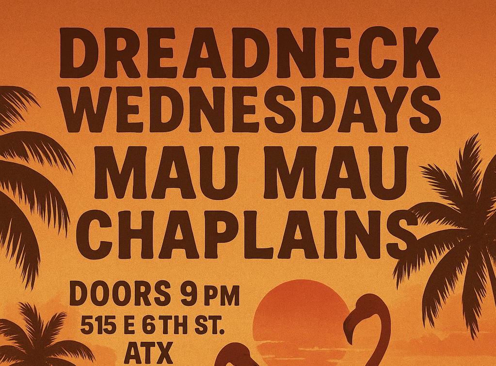 Featuring local acts! Dreadneck Wednesdays is a weekly reggae event series starring Mau Mau Chaplains—the best regular reggae/ska show in town and the ONLY place to be on a Wednesday night. The Mau Mau Chaplains assemble several hundred years of collective reggae experience, defining the Sixth St. music scene with