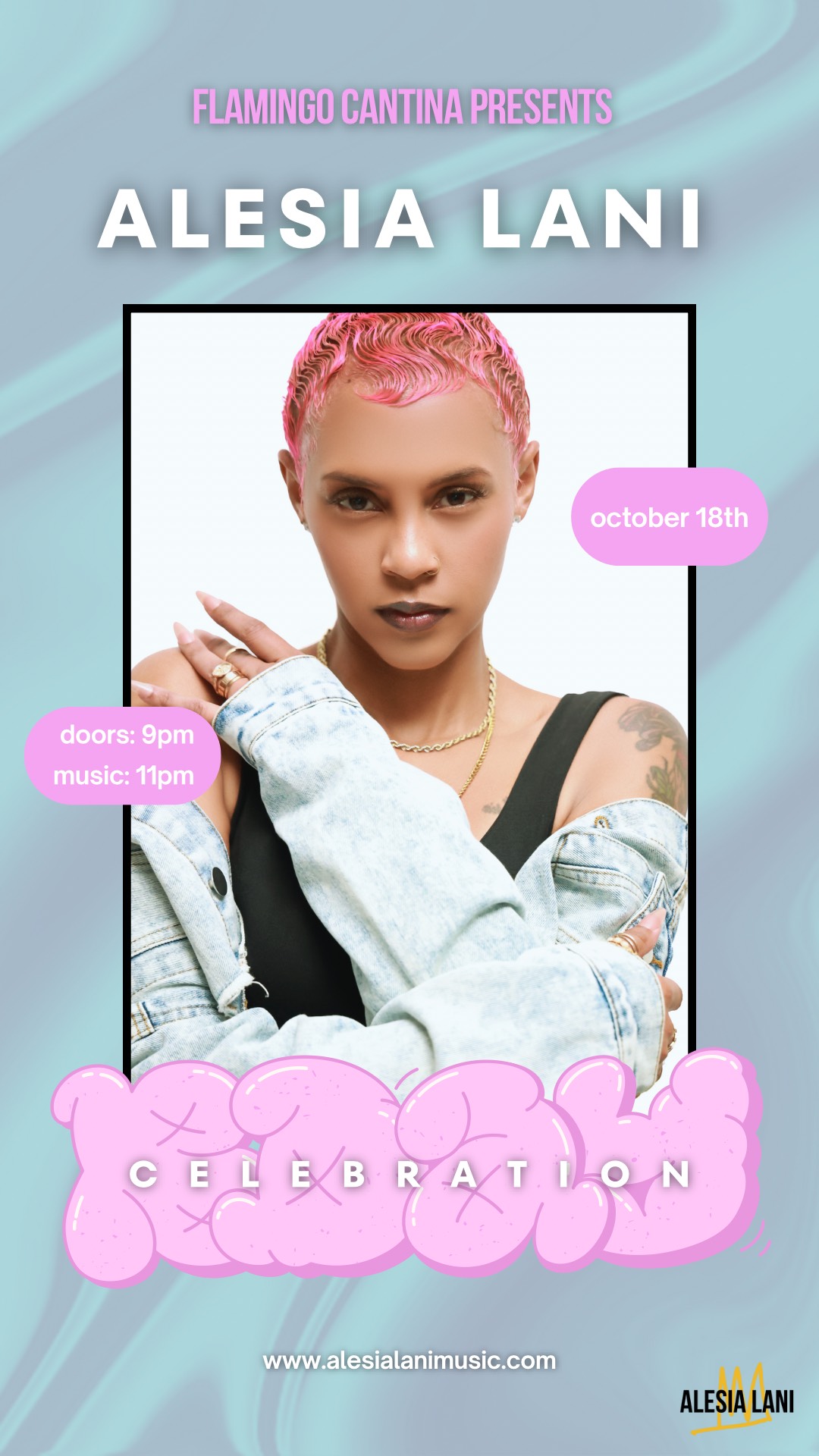 Join us for Alesia Lani’s Birthday Bash and an electrifying live performance on Saturday, October 18th at the legendary Good Vibes Club, Flamingo Cantina!