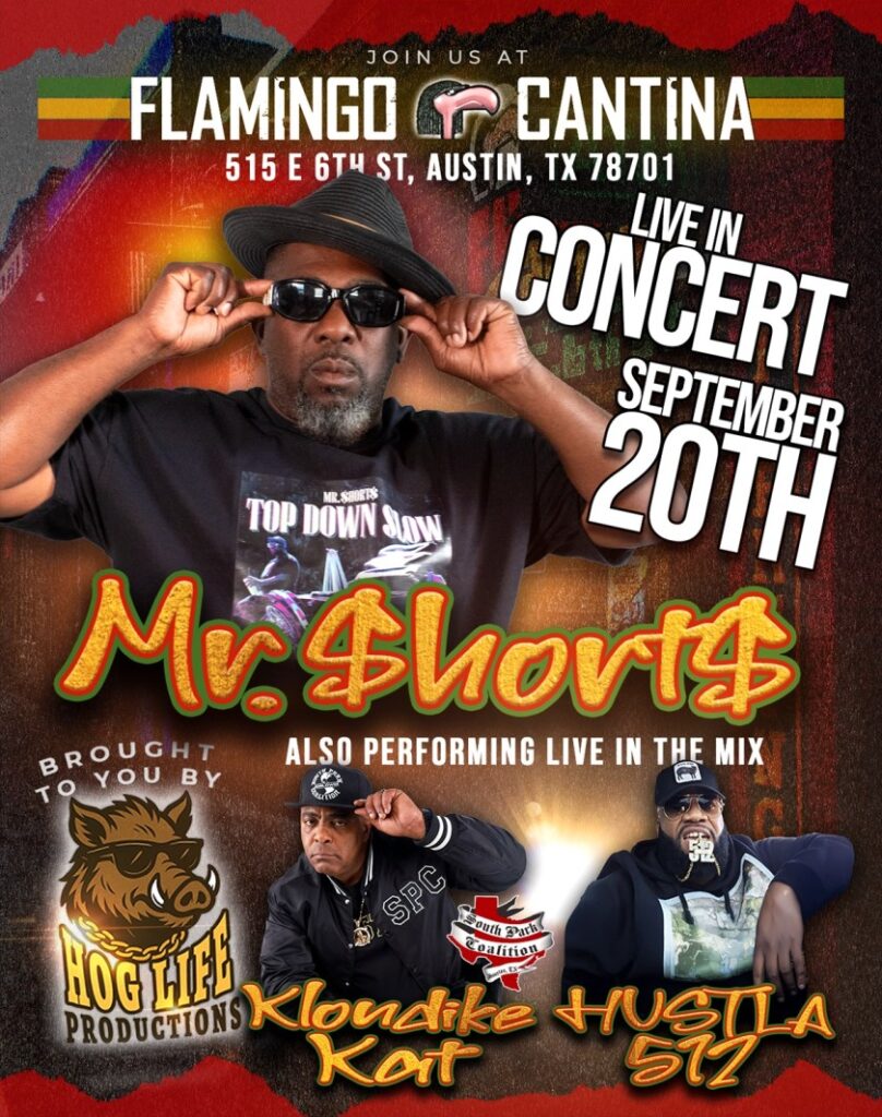 Mr. Shorts is a Southern hip hop veteran who’s been involved in the Austin rap scene since the mid 80’s. Inspired by the greats like Big Daddy Kane, Eric B & Rakim, he developed into an impactful voice in Texas hip hop. Mr. Shorts reinvented his style once (when) legendary music executive and promoter J Prince brought Rap-a-Lot Records into the hip hop fold. Since that time, Mr. Shorts has worked with Southern rap icons like 3x Grammy winner, Chalie Boy, Li’l Keke, Big Pokey, Devin the Dude, K-Rino, and Yungstar (just to name a few), with some upcoming projects in the works. Coming up as a member of Austin’s “Hog Pen Clique”, Mr. Shorts has evolved into a respected figure in the Austin music scene. His charismatic vocals and hard-hitting lyrics have paved the way for many successful collaborations, and afforded him the opportunity to rock stages across the country. Mr. Shorts is methodically unleashing his latest solo project, delivering his new album material mixed between Austin and Houston, TX.
