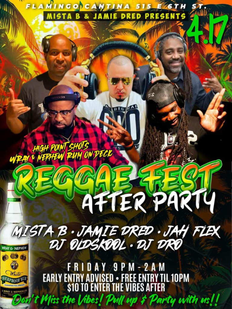 Get ready to feel the Island Vibes at the Reggae Fest After Party with DJ Mista B!
