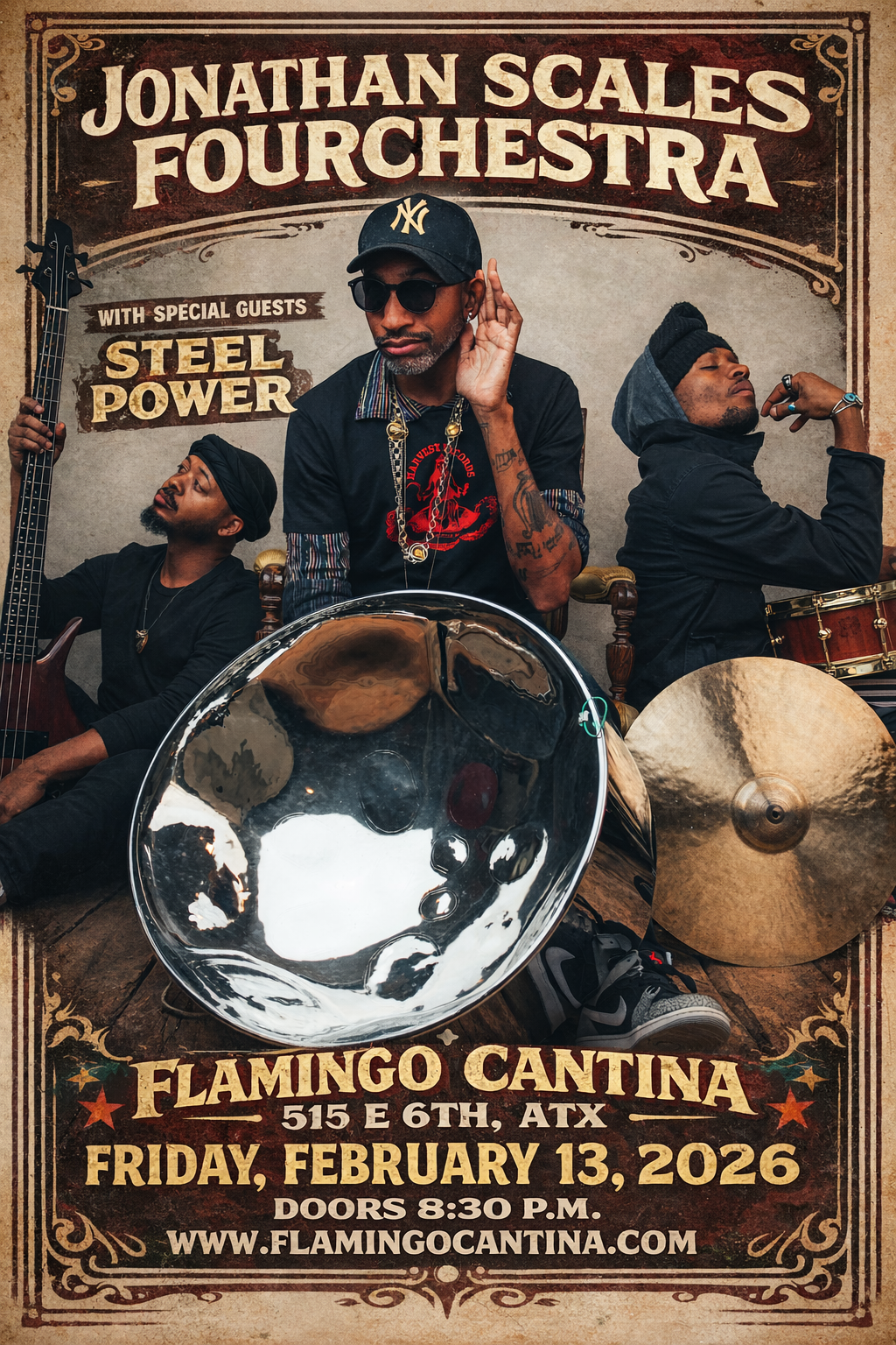Join us for a night of Jazz, Prof Rock, Funk, Soul & Latin influence on Friday, February 13th for Jonathan Scales Fourchestra with special guest Steel Power!