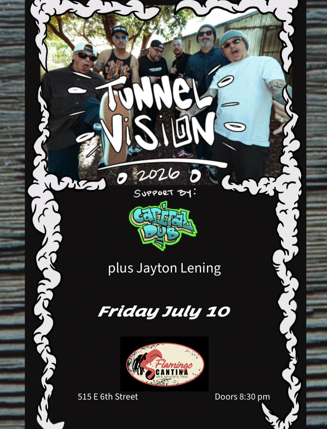 Join us for the high-energy sounds of Tunnel Vision! They’re bringing their signature surf-reggae-punk style to Austin for one night only!