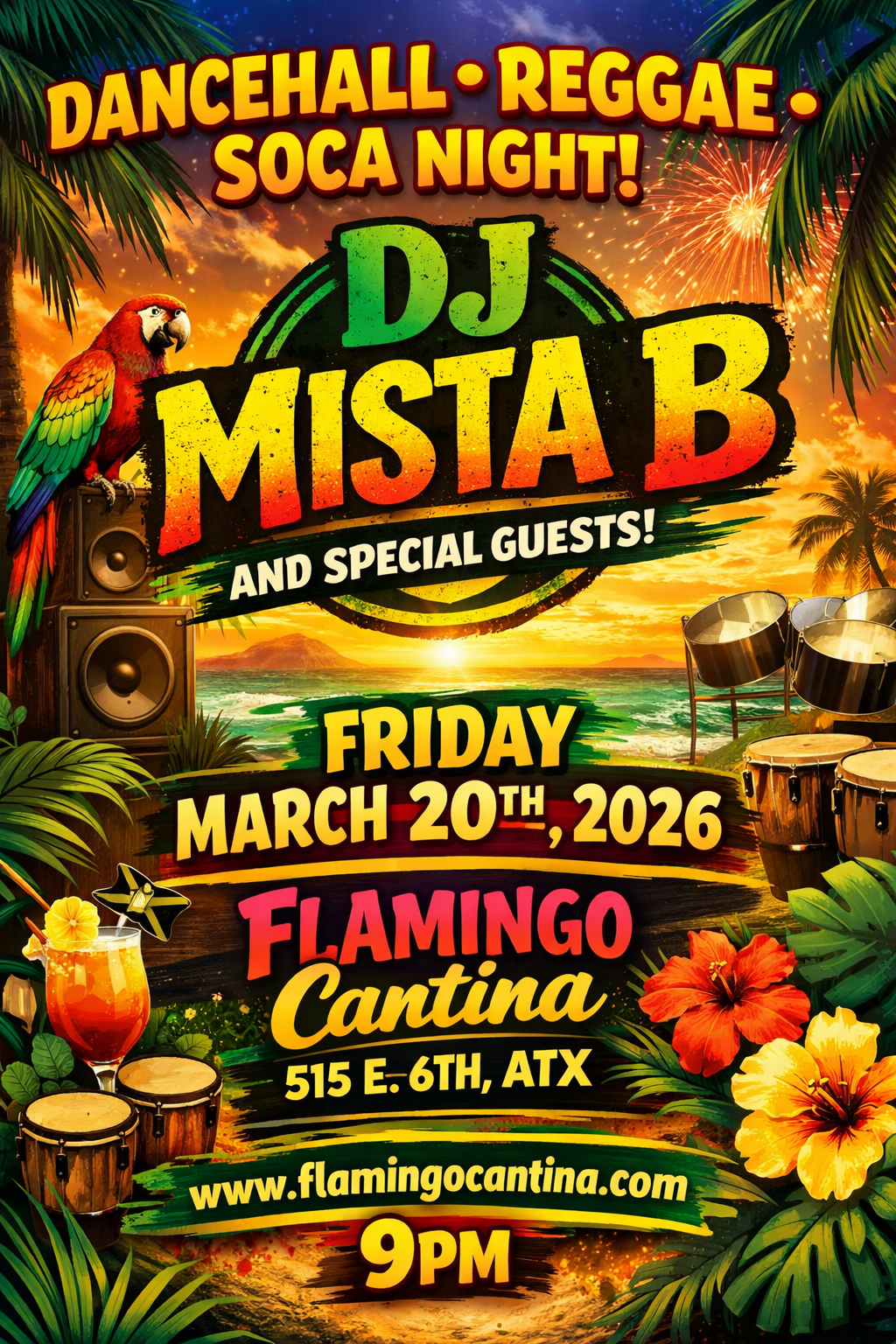Get ready for a tropical vibe! Join us for an unforgettable night of Dancehall, Reggae & Soca hits with the elite sound selectors!