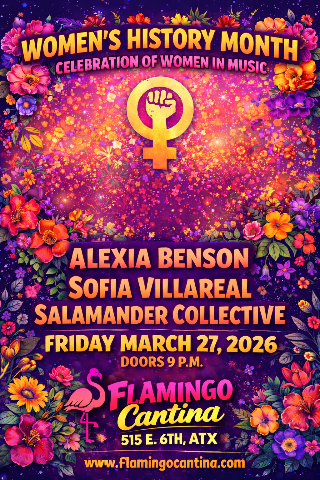 This special showcase honors the incredible contributions of women in music and a powerhouse lineup of local talent including Alexia Benson, Sofia Villareal, & Salamander Collective.